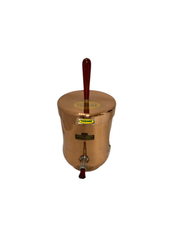 Chocolatera con estructura en cobre pulido y barnizado a 180°c.