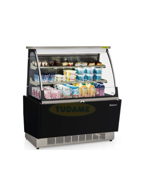 Mostrador abierto con estructura en acero inoxidable y vidrio doble templado