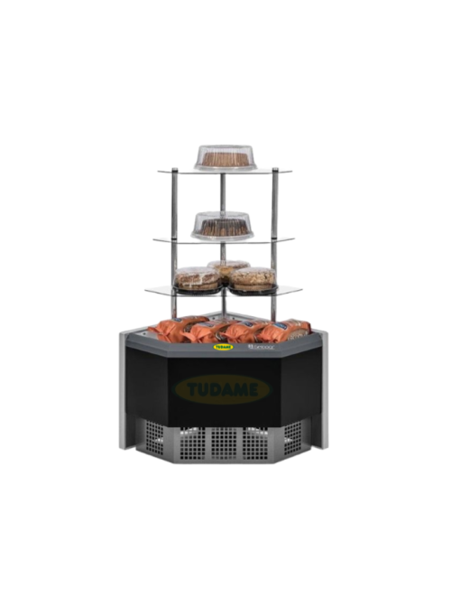 Mostrador esquinero para exposición de productos en condiciones ambientales